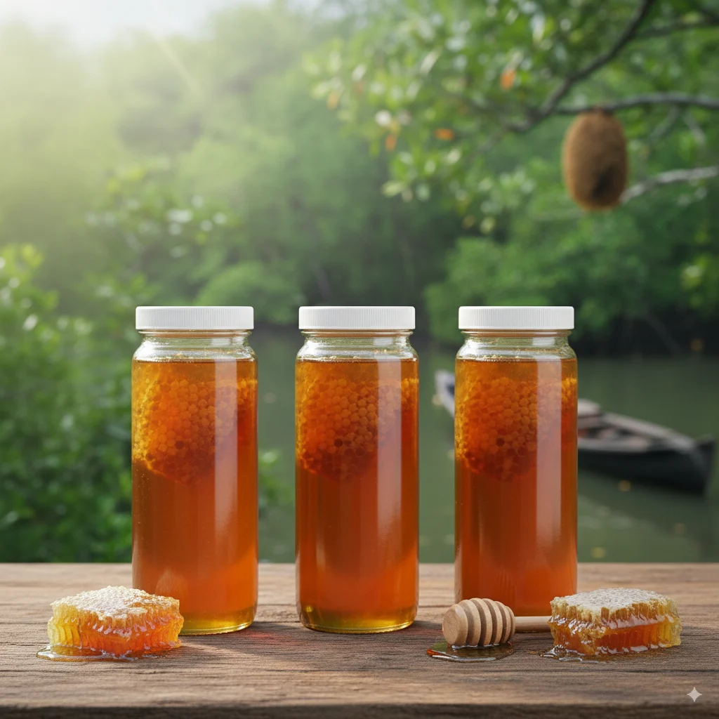 সুন্দরবনের গহিন অরণ্য থেকে সংগ্রহ করা, শতভাগ প্রাকৃতিক চাকের মধু আপনার সুস্থ জীবনের সঙ্গী। প্রকৃতির বিশুদ্ধ ছোঁয়ায় বেড়ে ওঠা এই মধু শুধু সুস্বাদুই নয়, আপনার স্বাস্থ্যের জন্যও অপরিহার্য। প্রতিটি ফোঁটায় সুন্দরবনের বুনো ফুলের নির্যাস, যা আপনার দেহ ও মনকে সতেজ করে তোলে। সুন্দরবনের প্রাকৃতিক পরিবেশ থেকে সরাসরি সংগৃহীত এই মধু আপনার সুস্থ জীবনযাত্রার এক অনবদ্য অংশ হয়ে উঠুক।